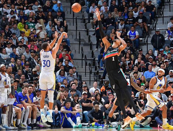 北京时间11月15日NBA杯赛继续进行,金州勇士休战一天后再次客场挑战圣安东尼奥马刺队。本场比赛勇士这边库明加因伤不打,科尔沿用上一场理查德、巴特勒、格林、穆迪、库里的先发阵容,马刺这边也没有变阵瓦塞尔、巴恩斯、文班亚马、卡斯尔、福克斯继续搭档先发。C组这边勇士目前以-25净胜分排名倒数第一,马刺则以+11净胜分排名第一,这场比赛对于勇士来说就是最后的机会,大比分赢球还有一丝出线机会否则将彻底无缘杯赛决赛!回到比赛上来,这场比赛由于是双方接连两场连续对决,相当于在打系列赛就看双方谁能更好的总结上场比赛不足。上一场比赛勇士上半场打得不好,库里攻防两端被针对,马刺上半场用卡斯尔攻防两端消耗库里取得了非常不错的效果,到了下半场科尔做出调整不让库里去防卡斯尔,勇士吹起反击高潮!